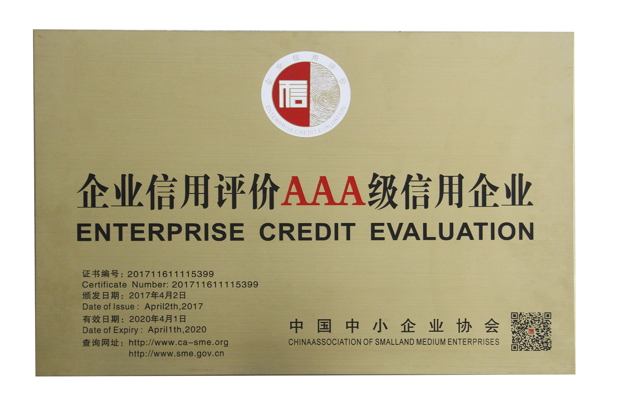 企業信用評價AAA級別信用企業