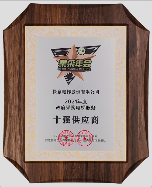 2021年度政府采購電梯服務十強供應商