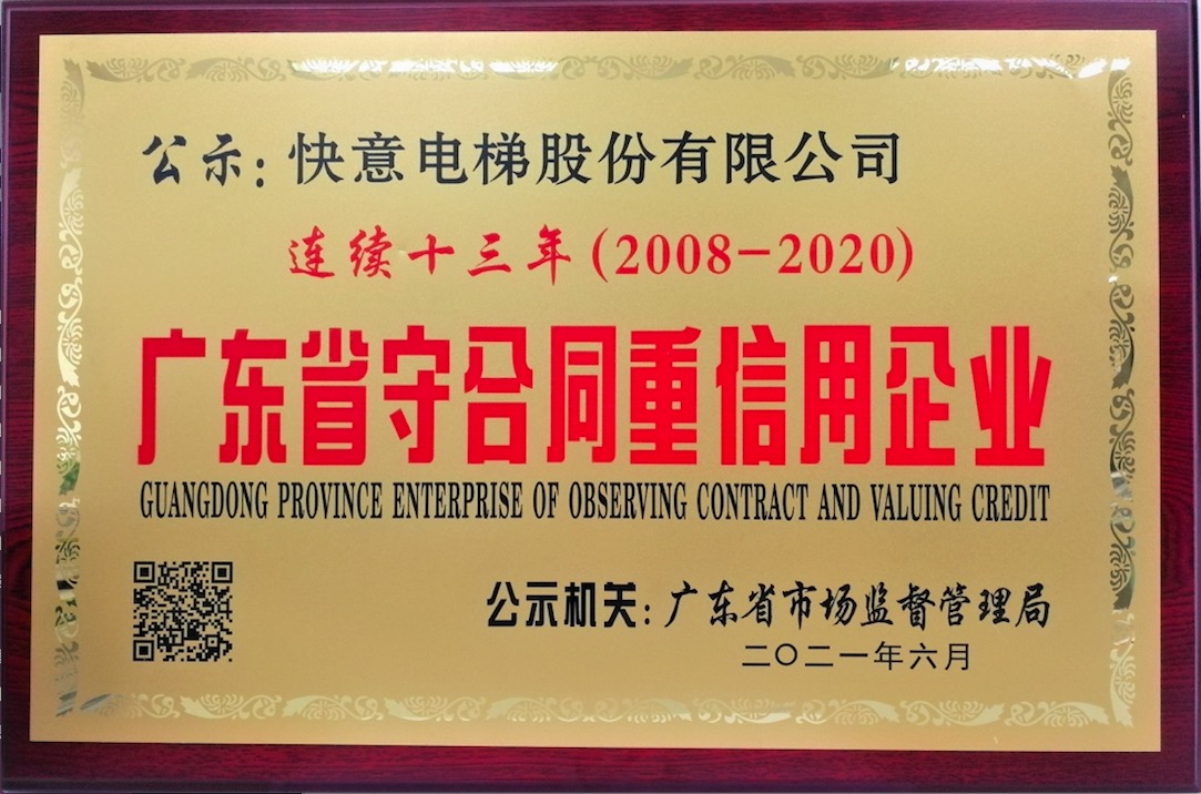 廣東省守合同重信用企業牌匾(連續十三年)